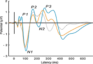 Dyslexia evaluation using brain dynamics response (event related potentials).